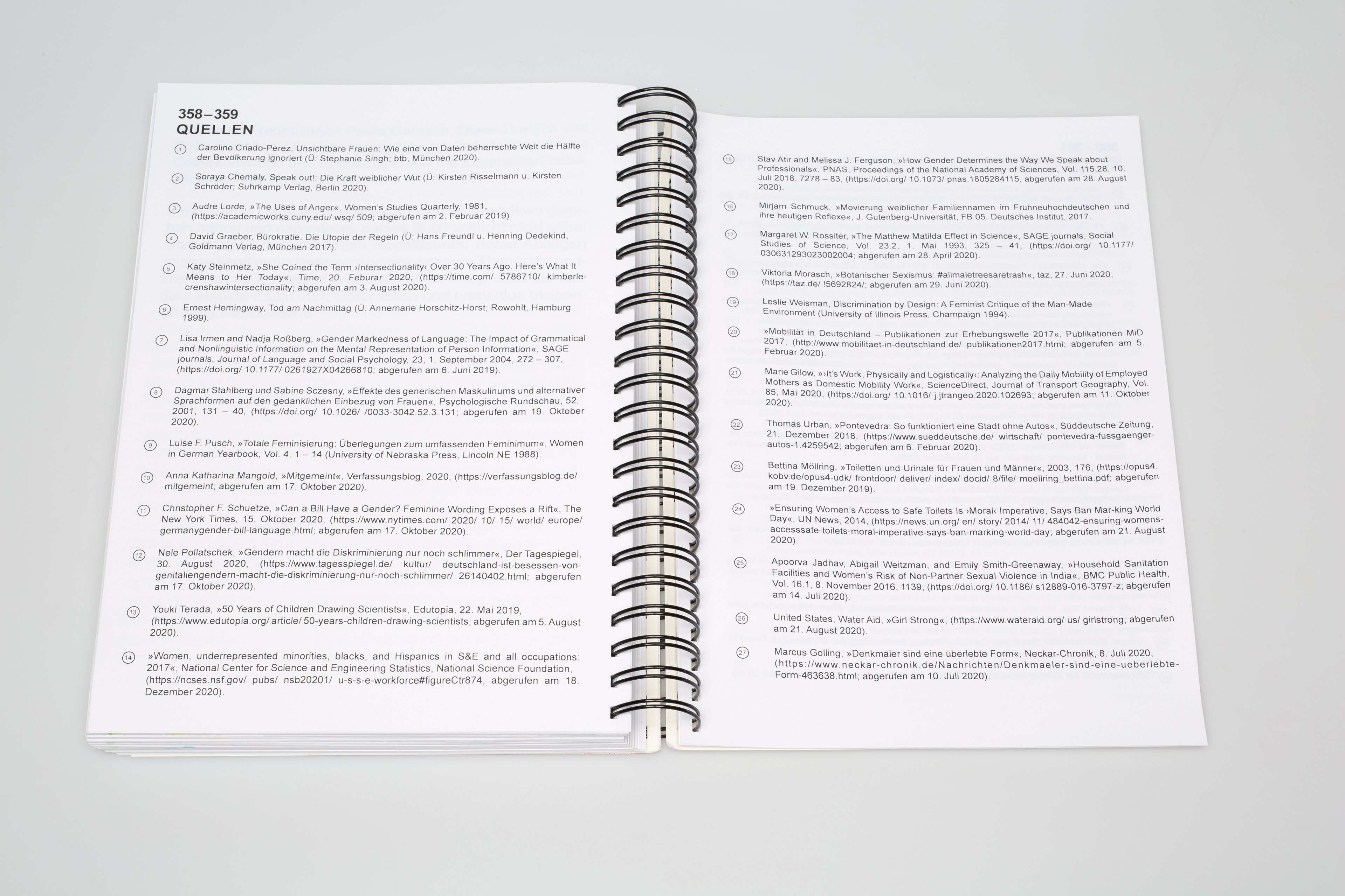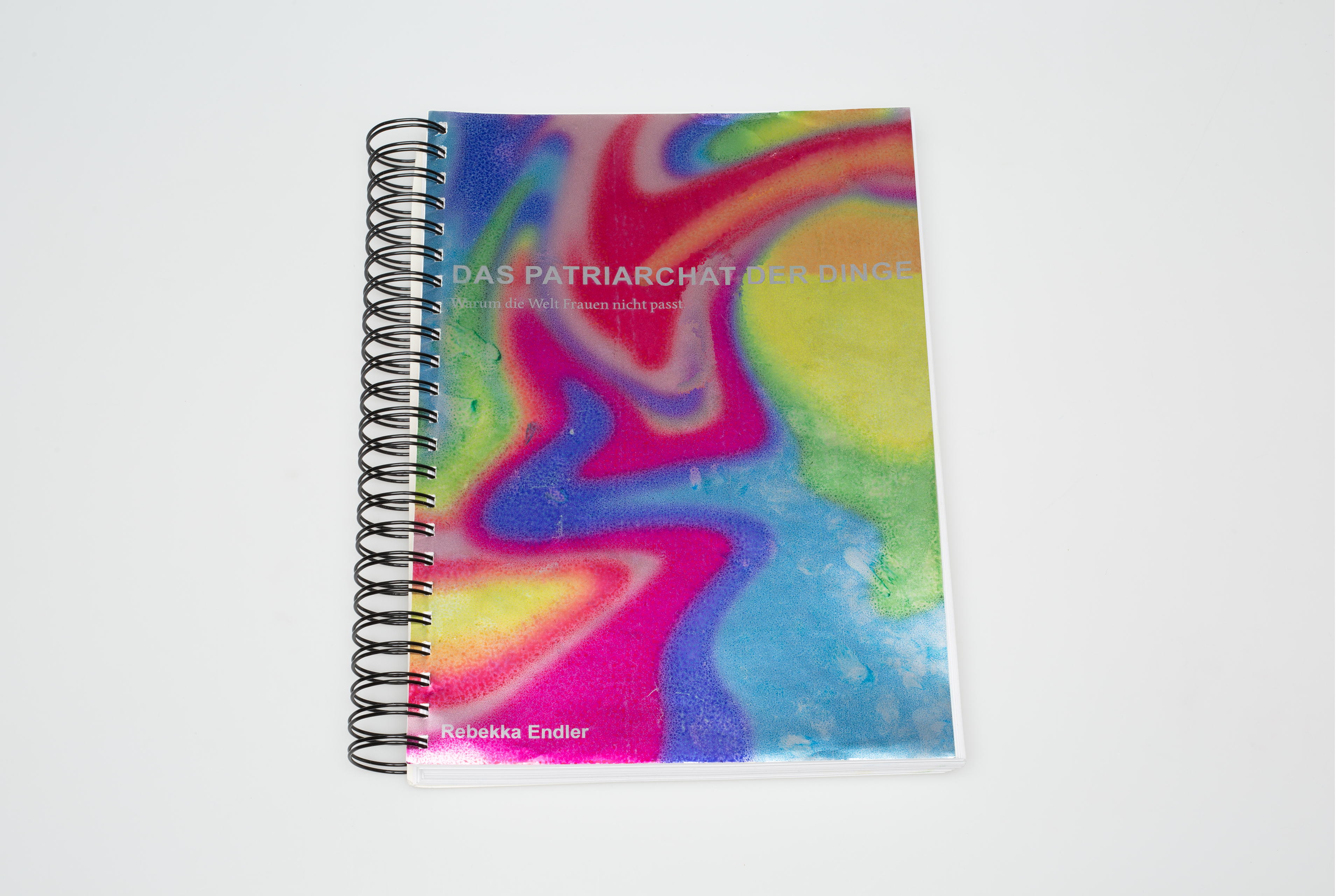 Im Rahmen eines Semesterkurses wurde eine typografische Auseinandersetzung mit dem Buch "Das Patriarchat der Dinge" gestaltet. Das Ergebnis ist ein Werk im Format DIN A4, das die inhaltlichen und gestalterischen Aspekte des Buches neu interpretiert. Die Arbeit wurde mit einer Ringbindung versehen.