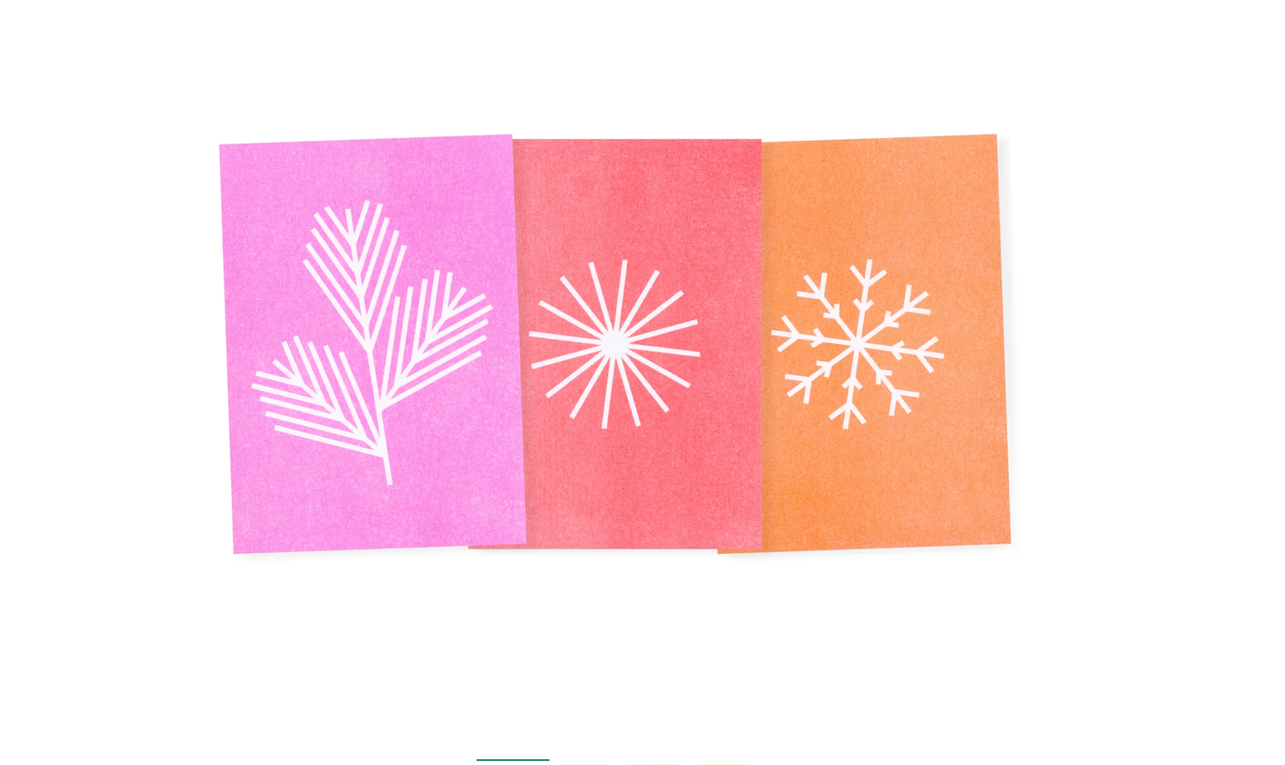 Postkarten-Set Riso: Neon Flocke Zweig Stern