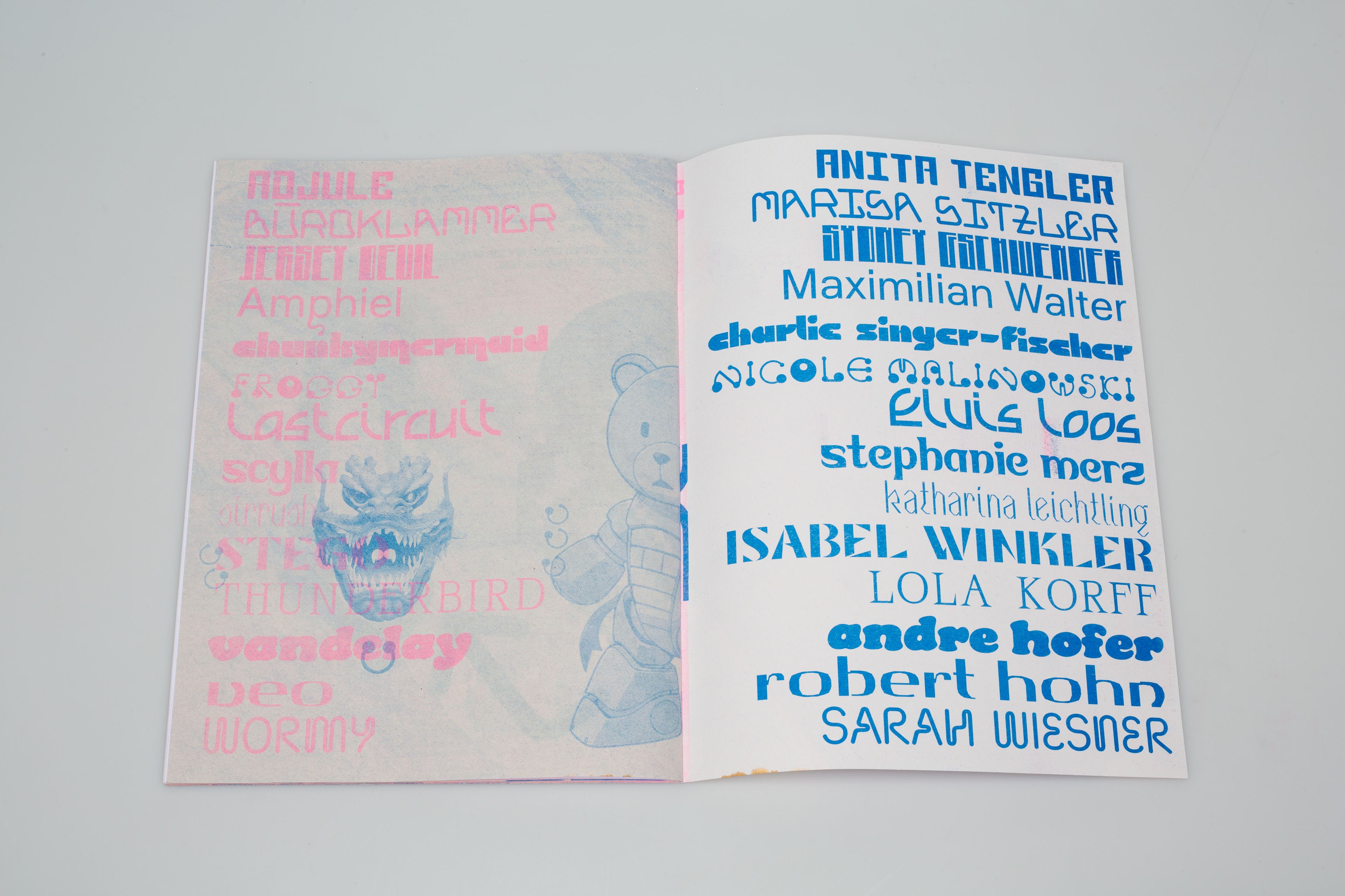 Im Rahmen eines Semesterkurses entstand die Schrift scylla, inspiriert von dem gleichnamigen Cryptid. Im Kurs wurden insgesamt 14 Schriften entwickelt, die jeweils charakteristische Merkmale und Formen des gewählten Cryptids interpretieren. Als Abschluss des Projekts wurde ein Heft im Format DIN A4 gestaltet und am Risographen in Blau und Fluo Pink gedruckt.